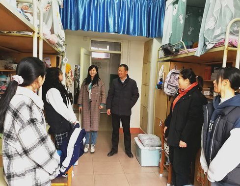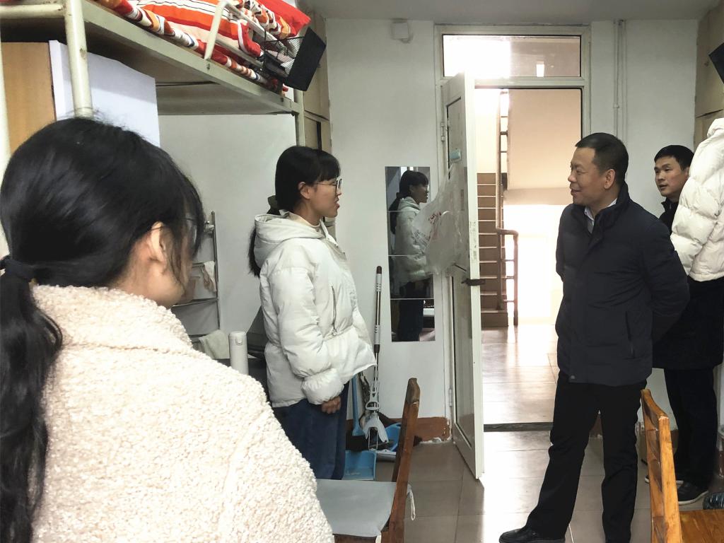 为了解学生返校情况,确保返校复学疫情防控各项工作落到实处,2021年3月3日,Beat365中文官方网站党委副书记陈永钊在辅导员沈国梁、刘梦的陪同下,深入Beat365中文官方网站学生宿舍,看望新学期返校学生。