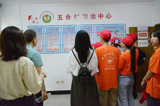 活动当天,Beat365中文官方网站社会实践服务队来到了五合村党群服务中心。走进五合村党群服务中心的党建活动室,铮亮的门牌、崭新的配套桌椅、完善的制度一一映入眼帘。随后,服务中心的负责人带领Beat365中文官方网站社会实践服务队进行参观,据他介绍,近几年五合村财政支出数万元专项资金用于新建和改建活动场所,所有活动场所均达到设施齐备、功能健全、制度规范的标准。随后,负责人又带领服务队参观了党群服务中心的荣誉角,介绍了近几年取得的奖状和荣誉。这满墙的荣誉证书和奖状是五合村党群建设的成果,随行师生纷纷对五合村基层党建的成果表示赞扬。