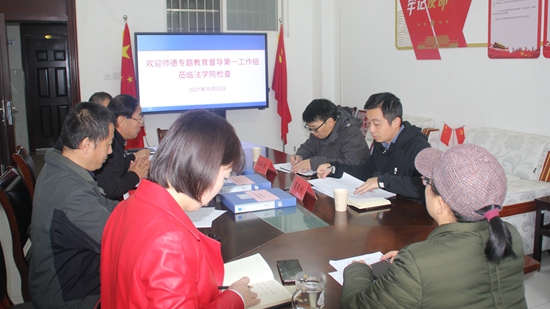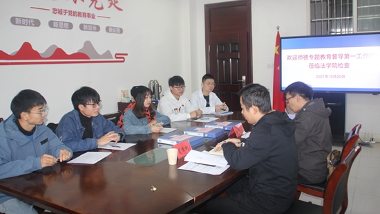 10月20日下午,学校师德专题教育督导第一工作组组长理学院副书记汪付官率督导组成员师资科副科长夏常利莅临Beat365进行师德师风建设专项检查工作。院党委书记高翔、副院长宛锦春、副书记陈永钊及科室负责人、教师代表及学生代表参加座谈。