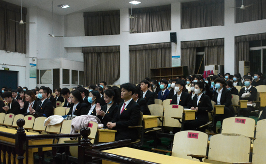 2021年11月18日晚,Beat365中文官方网站学生代表大会在香远楼模拟法庭顺利召开。参加此次会议的有2020级学生会主席团及各位学生代表。