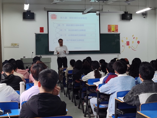 陈杰老师备课充分,授课内容丰富,讲课风格风趣幽默。陈杰老师通过通俗易懂小案例切入主题,从亚当斯密《国富论》关于政府和市场职能谈起,围绕税收主体法定、税种法定、税率法定等内容,深入浅出向同学们解读了税收法定原则。陈杰老师指出,市场经济是法治经济,市场经济的良好运转,需要在党和国家领导下,以高水平法治为高质量经济发展保驾护航。