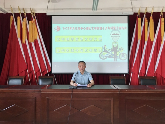 会上,李德恩传达了《关于开展文明交通专项整治工作的通知》,领学了《九江市市民文明出行倡议书》《九江市文明交通公约》,观看了文明交通宣传视频,号召全体教职工自觉遵守文明交通公约,做到文明驾车、文明骑车、文明步行,共创安全、畅通、文明、和谐的交通环境。
