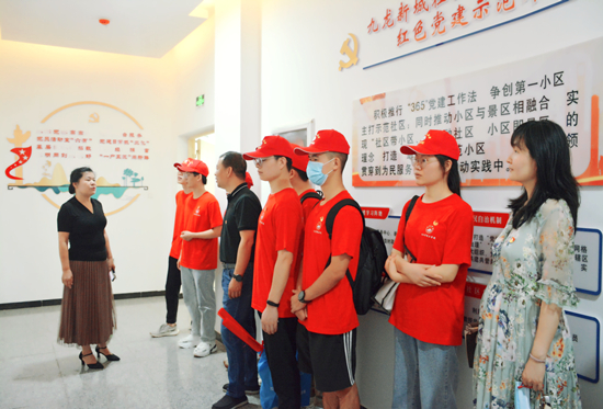 6月24日,在Beat365中文官方网站党委副书记陈永钊、指导老师刘梦和沈国梁的带领下,Beat365中文官方网站暑期“三下乡”社会实践服务队来到九江市濂溪区八里湖新区九龙新城社区实践文明活动基地,参观学习了九龙新城社区实践文明基地的基层党建。