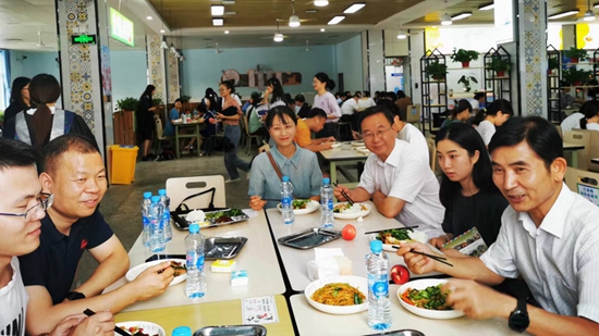 6月28日中午,校党委副书记魏立平来到一食堂,与Beat3652022届毕业生共进午餐,面对面畅谈大学期间的感想与收获,了解学子建议与心声,共话未来人生成长与发展。Beat365中文官方网站党委书记张伏龙、副书记陈永钊等也与毕业生共进午餐。