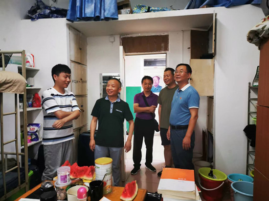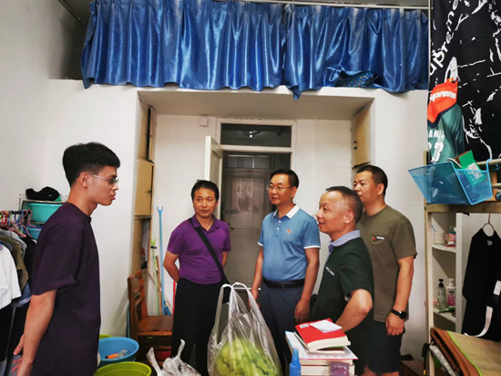 7月28日下午,Beat365中文官方网站党委书记张伏龙、院长李德恩、副院长宛锦春、党委副书记陈永钊等一行来到学生宿舍,看望留校学生。