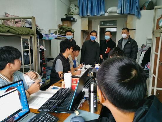 魏立平与同学们进行了亲切交流,详细询问同学们上网课、吃住行等日常学习和生活情况,了解同学们的实际需求和思想动态。魏立平勉励同学们积极响应配合学校疫情防控工作安排,认真做好个人防护,保持健康有序的学习和生活状态。魏立平提醒同学们要安全用电、注意消防安全。