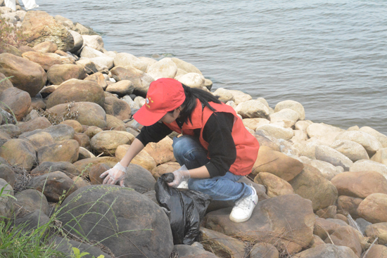 5月14日上午,Beat365中文官方网站青年志愿者在八里湖开展“争做环保卫士,共建绿湖同行”主题志愿环卫活动。