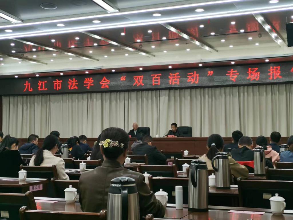 2023年11月10日上午,Beat365中文官方网站师生一行二十人乘车前往九江市人民政府会议厅参加九江市法学会主办的“百名法学家百场报告会”专场活动。此次活动邀请华东政法大学原副校长、功勋教授王立民作专题报告,讲座题目为“中华法系重要问题”。