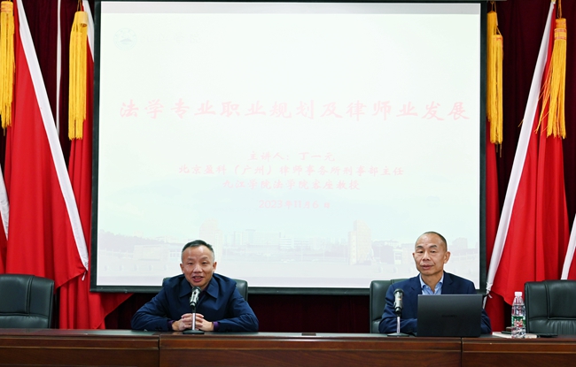 11月6日上午,Beat365中文官方网站关心下一代工作委员会于香远楼624会议室组织开展了主题为“法学专业职业规划及律师业发展”的讲座。讲座邀请了1985届优秀校友、盈科律师事务所刑事部主任丁一元主讲,院党委书记张伏龙、院长李德恩、院关工委成员及20级和21级Beat365中文官方网站学生参加了讲座。