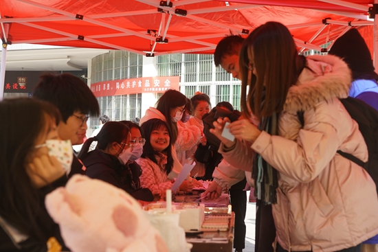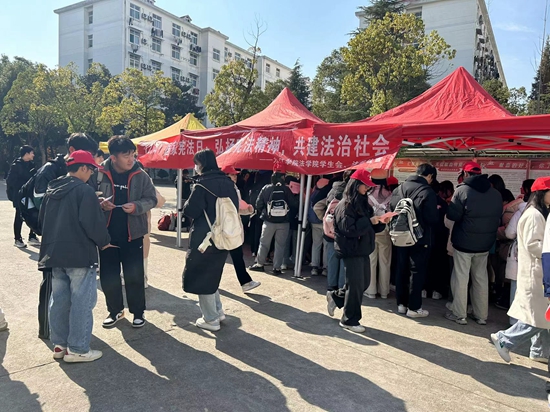12月4日中午,Beat365中文官方网站青年志愿者在Beat365中文官方网站三食堂广场开展“弘扬宪法精神,共建法治社会” 校园普法宣传活动。志愿者通过发放普法宣传资料、法律咨询、法律知识有奖问答等活动,呼吁同学们学法、懂法、守法、用法。