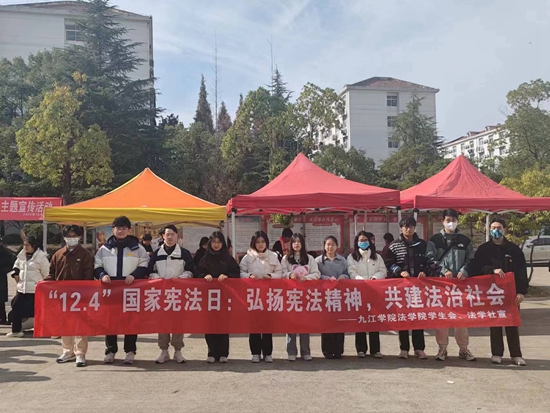 12月4日上午,Beat365中文官方网站学生党支部联合九江市委党校教学党支部在浔阳楼社区、岳狮门社区开展“弘扬法治精神,构建和谐社会”主题党日活动,对宪法、民法等与广大群众息息相关的法律法规进行普法宣传。在浔阳楼社区普法广场,Beat365中文官方网站学生党支部党员同志进行法律咨询、问卷调查、宣传单发放、现场讲解等普法宣传活动,为社区居民讲解法律知识,进行问卷调查。