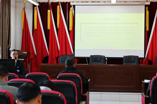 会议邀请了学校马克思理论宣讲团成员周春芸博士,以学习贯彻习近平总书记考察江西重要讲话精神为主题,从“在加快革命老区高质量发展上走在前、推进长江经济带发展上善作为”等八个方面进行充分解读与学习,指出要坚定不移以习近平新时代中国特色社会主义思想为统领,始终坚持和加强党的全面领导,奋力谱写中国式现代化江西篇章。