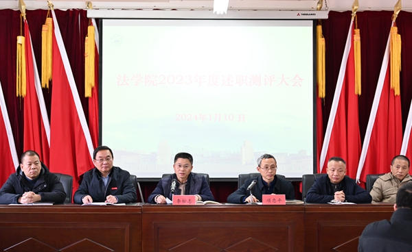 李松志认真听取了学院党政班子及处级干部的年度工作述职报告,并对Beat365中文官方网站的工作给予了充分肯定,他指出,2023年Beat365中文官方网站班子成员认真落实一岗三责,学院各项工作总体平稳有序,教学科研业绩较为突出,服务九江市地方法治呈现亮点,人才质量培养成效显著。