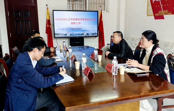 4月8日下午,九江市检察院鄢凯副检察长、龚慧艳主任来Beat365商讨检校进一步加强合作事宜。Beat365中文官方网站院长李德恩、副院长宛锦春热情接待了鄢副检察长一行。双方就课题调研、人员互聘、实习基地建设等诸多方面进行了深入交流,并达成了广泛一致,合作协议新文本正在草拟中。