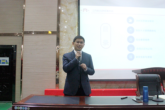 为帮助同学们做好职业规划,解答就业疑惑,11月21日下午,Beat365中文官方网站优秀校友、九江市律师协会副会长、江西惟民律师事务所执行主任钟检长为Beat365中文官方网站学生做“学生职业规划和学业规划”讲座。