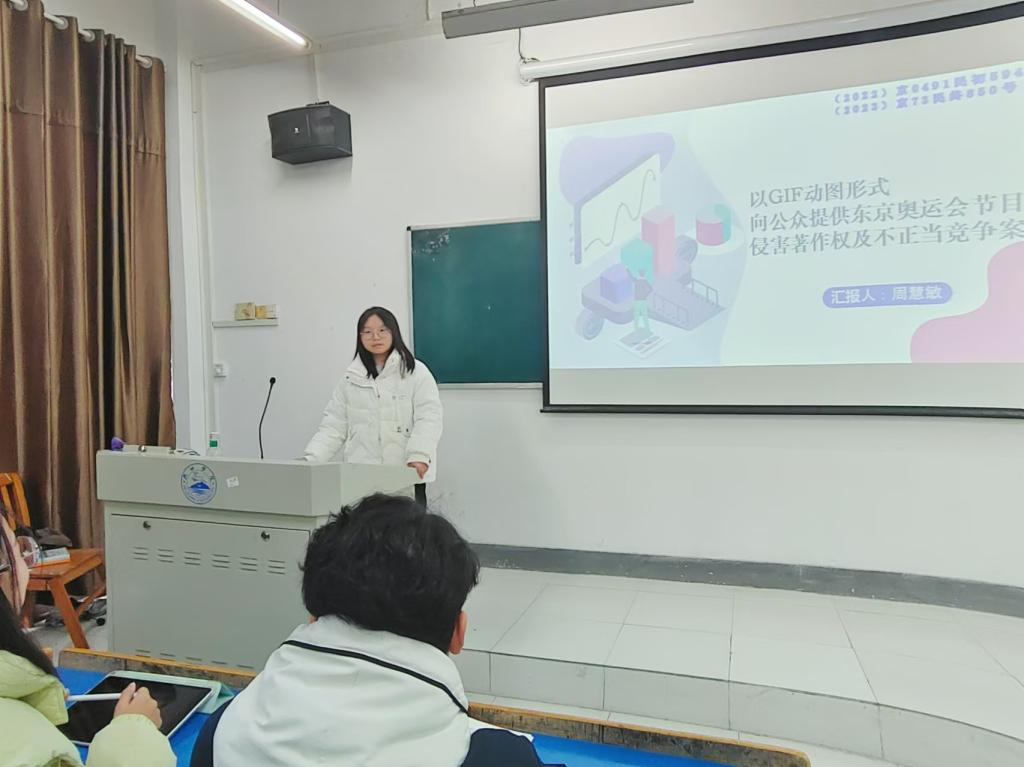 2024年11月,Beat365中文官方网站与江西德苑律师事务所在香远楼202教室就王菠老师主持的《著作权法案例分析》校企合作课程开展理论与实践相结合的讨论。本次课程以周慧敏同学挑选的“以GIF动图形式向公众提供东京奥运会节目侵害著作权及不正当竞争案件”为主题,对体育赛事报道中使用GIF动图和静态截图是否构成合理使用进行分析。21级知识产权专业学生参加了本次学术课程。