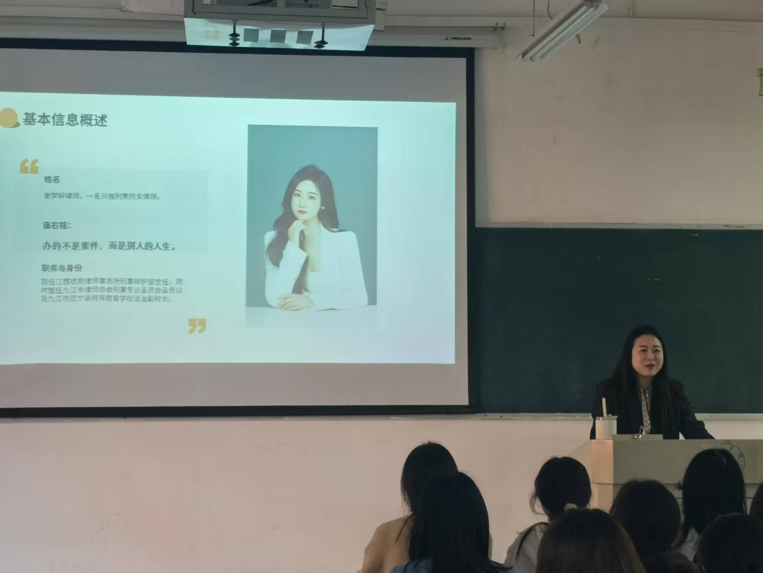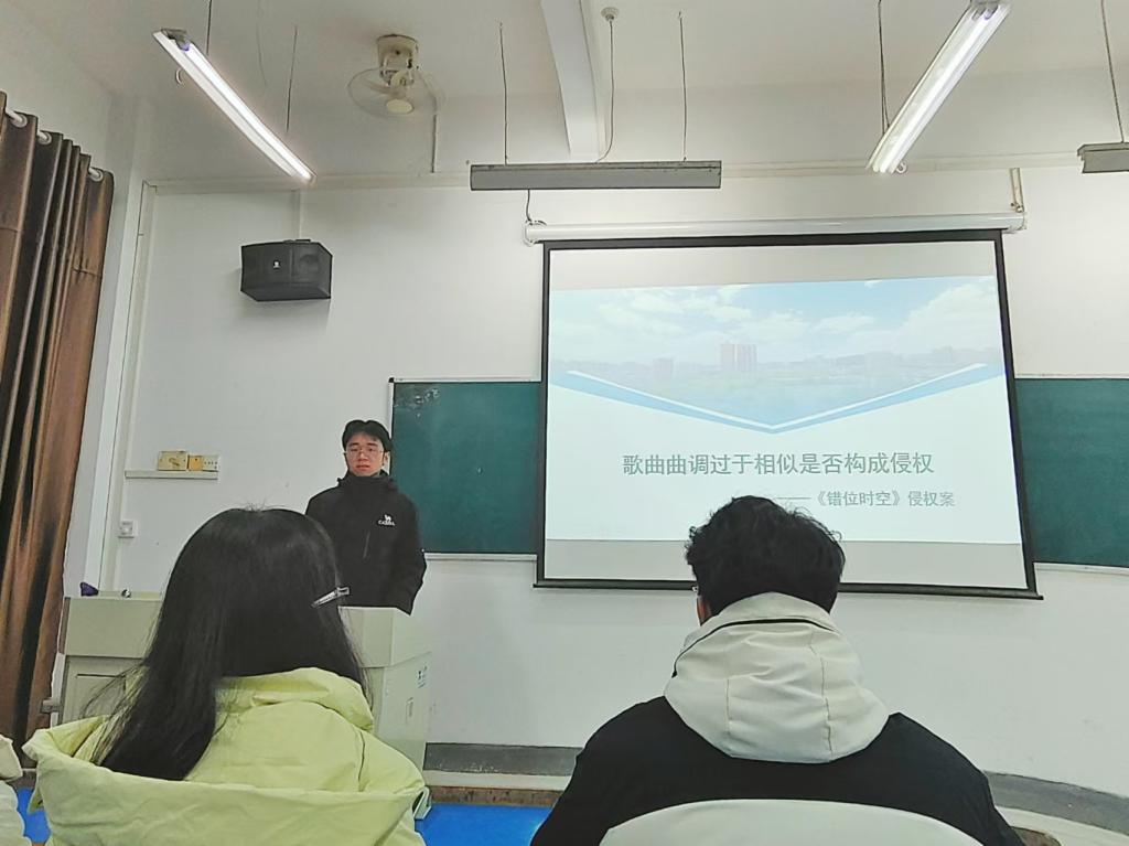 课堂讨论环节,江西德苑律师事务所谢梦婷律师从自身执业经历和亲身办案实践经验对案例从多方面、多角度进行了详细的分析。歌曲曲调过于相似是否构成侵权?诉讼主体资格是否适当?被告应否承担侵权赔偿责任?同学们围绕案件焦点进行探讨。