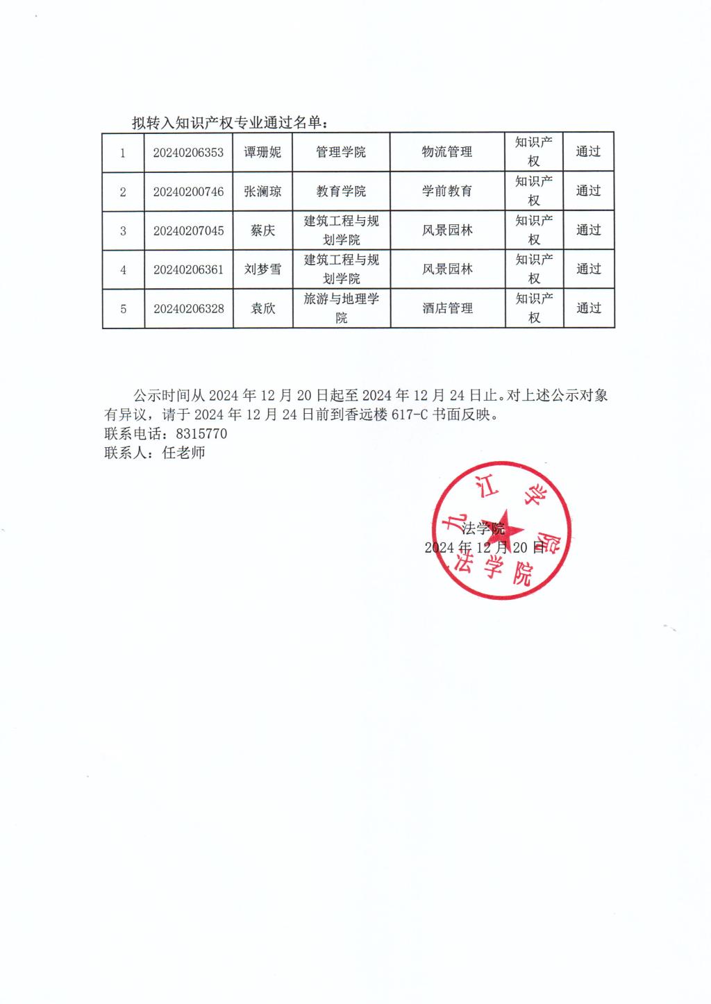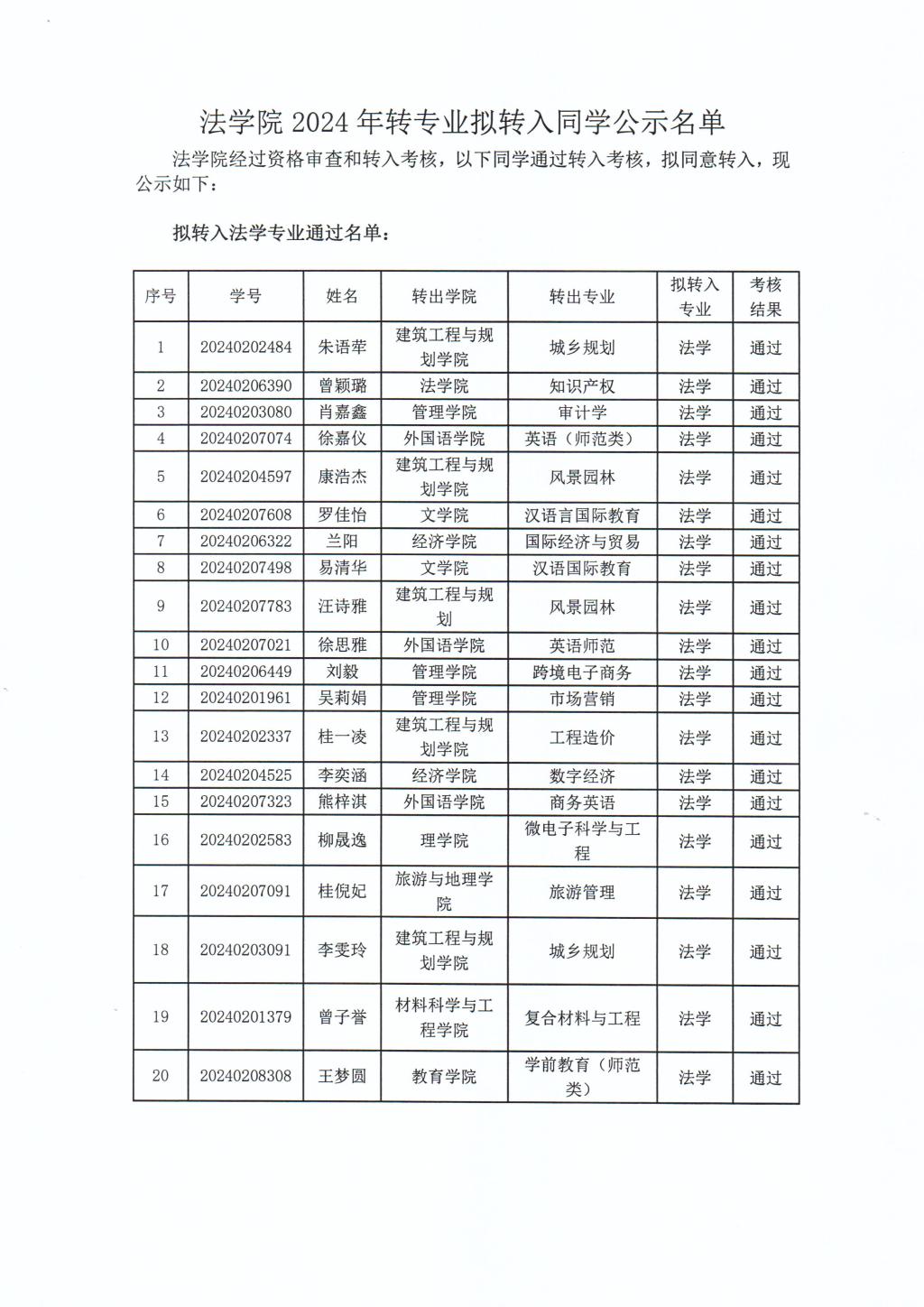 Beat365中文官方网站2024年转专业拟转入同学公示名单