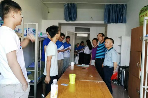 9月5日下午,政Beat365中文官方网站党委书记高翔、副院长李德恩、宛锦春等院领导和19级辅导员来到学生宿舍,看望政Beat365中文官方网站大家庭新的成员——19级新同学。