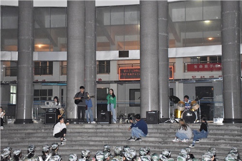 歌声与旋律的交融,乐队的一首《红色高跟鞋》拉开晚会序幕,动听的歌声让人陶醉其中、回味无穷。弦与指间的碰撞,一首《春风十里》的吉他旋律悠然响起,歌声如春风飘进大家的脑海,吹散了同学们一天的疲乏,曲毕,全场掌声雷动。歌声与歌声的共鸣。大一新生带头献唱歌曲《拥抱》,欢快的旋律引起现场的同学们纷纷加入合唱,灿烂的笑容在每个人的脸上绽放。青春与舞蹈的交织,舞蹈队同学们为新生们展示街舞表演,热情激昂的舞蹈,点燃了全场的氛围。伴随着同学们此起彼伏的掌声,在闪光灯的照耀下,晚会落幕。