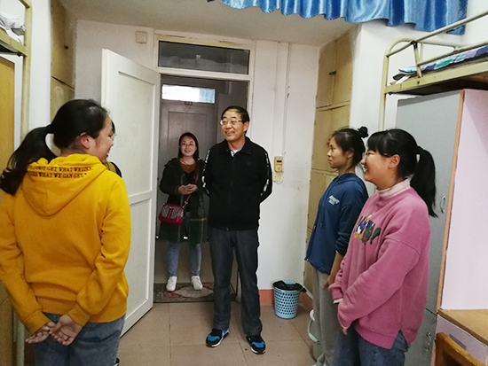 在学生宿舍,高翔亲切地询问了同学们生活和学习情况。在生活方面,他询问同学们的相处情况以及能否适应大学生活。在学习方面,他询问同学们的学习情况以及对学校的规章制度和教学工作有什么建议。同学们纷纷表示老师们工作非常地认真负责,讲课既专业又有趣,让人沉浸其中。