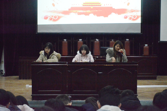 首先执行主席王俐力对本次学习“十九届五中全会精神”主题例会做了简要介绍,阐明了深入学习“十九届五中全会精神”的意义和必要性。随后,各部门干部干事分别上台发言,发言的各干部及干事首先向在场的各位同学分享了他们对“十九届五中全会精神”的理解,同时有的干部还说到,我们作为新时代中的大学生一定要把十九大报告学习好、领会好、贯彻好,自觉增强“四个意识”、坚定“四个自信”,共同迈入新时代,开启新征程,续写新辉煌。