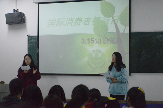为了迎接“3·15国际消费者维权日”的到来,Beat365中文官方网站于3月15日在香远楼120教室举办了“树立维权 消费无忧”全体大学生“3·15”知识竞赛活动。学生会主席团成员彭静,王俐力出席了此次活动。