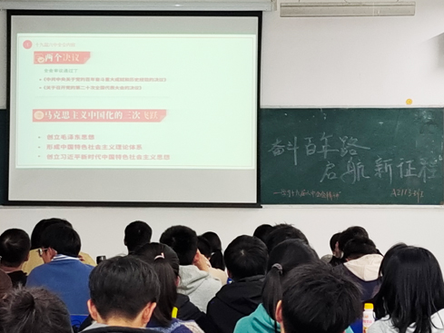 活动中,各团支部书记通过播放党的十九届六中全会视频、PPT讲解等形式,带领同学们学习党的十九届六中全会精神,和同学们一同回顾了中国共产党建党百年来所经历的重大事件及取得的伟大成就。同学们深受感染,纷纷上讲台分享党史故事及感悟。A2111班的黄婧蕾说:“作为一名大学生,自己的理想与祖国的发展密不可分,只有每一个小我都努力奋斗,提高自己的价值,才能让我们伟大的祖国蓬勃发展,实现中华民族的伟大复兴。”A2013班的钟子优说:“作为新时代青年大学生,应努力学习文化知识,提高自身素质和思想觉悟,树立远大理想,以中华民族伟大复兴为己任。”