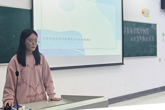 各班级团支部书记通过PPT向同学们介绍了中国记者节的由来和发展,通过播放优秀记者采访视频使得同学们对记者职业深入了解,有新闻的地方,就有记者的身影,他们用脚步丈量理想,用笔触传递力量。