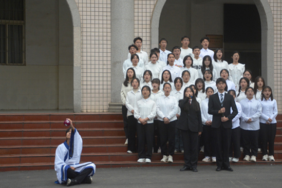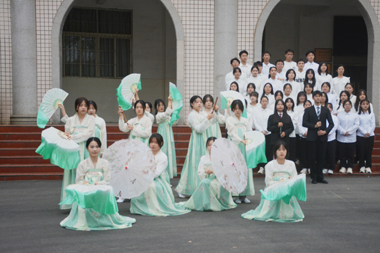 随着音乐悠悠响起,A2212班刘谊同学扮演观光团导游为游客讲解庐山的历史,带大家一起领略庐山风光。A2213班李江涛和A2221班刘淑文作为领诵,带领大家诵读经典《庐山谣寄卢侍御虚舟》和《荆门浮舟望蜀江》,舞蹈队队员们身着古风服饰伴舞,重现诗人李白遇赦东归、泛舟长江时的喜悦之情。在同学们的声声诵读中,庐山之壮美秀丽浮现眼帘,颇有身临其境之感。此次活动展示了传统文化的诗词之美,提升了广大同学的国学素养。
