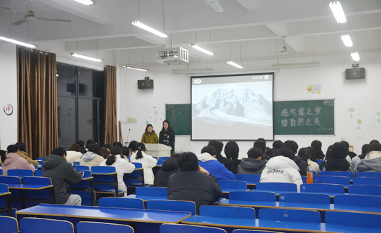 2月26日晚19:00,Beat365中文官方网站团委组织各团支部于香远楼开展“感气象之变,悟自然之美”主题团日活动,Beat365中文官方网站全体学生参加。