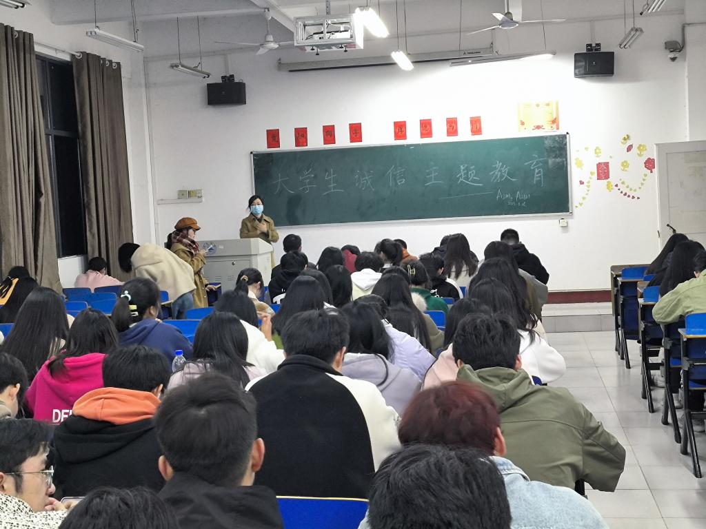 为加强大学生思想道德修养,引导同学们做新时代的诚信青年, 3月26日晚,Beat365中文官方网站各班级开展大学生诚信教育主题班会。