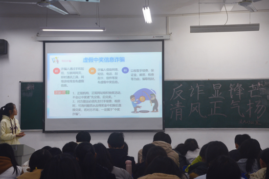 根据院思政科工作安排,团支书带领同学们观看了电信诈骗主题视频,结合视频向同学们讲述了各种常见的电信诈骗手段,向同学们介绍了预防电信诈骗的注意事项。活动最后,同学们共同呼吁提高防诈识诈能力,筑牢校园防诈防火墙,为营造健康、绿色、安全的校园环境贡献自己的力量。