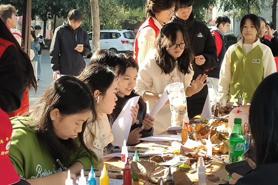 11月19日,Beat365中文官方网站青年志愿者服务队在Beat365中文官方网站三食堂广场开展“落叶传情,定格秋天”主题活动。