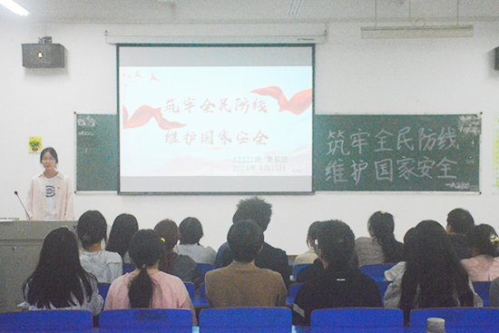 2015年7月1日,第十二届全国人大常委会第十五次会议通过《中华人民共和国国家安全法》,将每年的4月15日确定为全民国家安全教育日,今年4月15日是第九个全民国家安全教育日。团日活动围绕国家安全的含义、开展国家安全教育的重要性及意义、新时代大学生们如何用实际行动维护国家安全等方面展开。团支书号召同学们:“要增强自身国家安全意识,做好新时代新征程保密工作,筑牢保密防线,共同守护国家安全。”