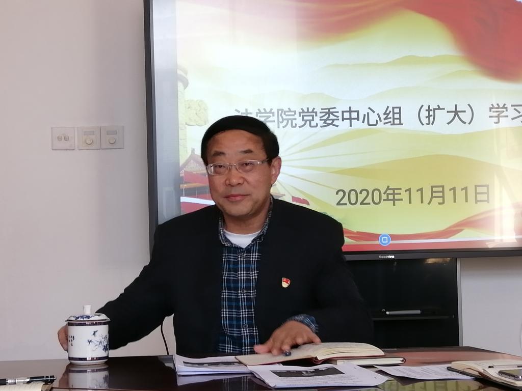 11月11日下午,Beat365中文官方网站党委在香远楼619会议室召开十一月份党委中心组(扩大)学习会,专题学习十九届五中全会精神,学院党委委员、行政领导、支部书记、工会主席、科室负责人参加了会议,会议由Beat365中文官方网站党委书记高翔主持。