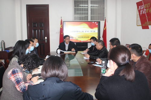 为更好地学习传达贯彻2022年全国“两会”精神,以更加昂扬的奋斗姿态迎接二十大胜利召开。3月30日下午,Beat365中文官方网站在香远楼619党委会议室召开三月份党委中心组专题学习会,学院党政班子成员、各科室主任、支部书记和工会主席参加本次学习会,学习会由院党委书记高翔主持。