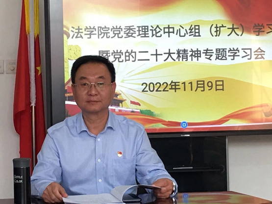 永远跟党走,奋进新征程。为学习宣传贯彻党的二十大精神,11月9日下午,Beat365中文官方网站在香远楼619党委会议室召开十一月份党委理论学习中心组(扩大)学习会,学院党政班子成员、各科室负责人、支部书记和工会主席参加本次学习会,学习会由院党委书记张伏龙主持。