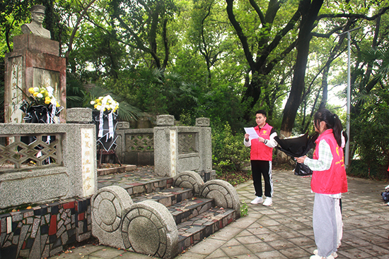 4月3日下午,Beat365中文官方网站学生党支部在甘棠公园蔡公纪念碑开展“缅怀革命先烈,赓续红色血脉”主题教育活动。学生党支部全体党员、部分入党积极分子和青年志愿者参加。