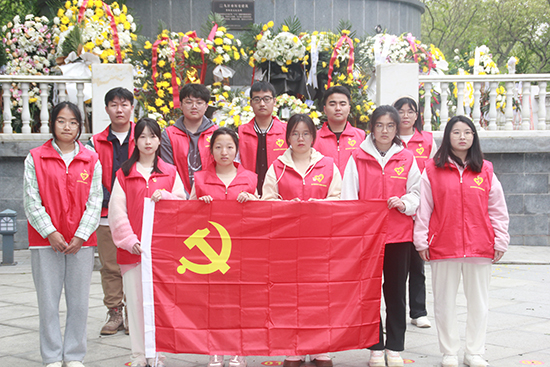 学生党员、入党积极分子和青年志愿者向英烈敬献鲜花,清理烈士墓纪念碑前的杂草和垃圾,用实际行动表达了对烈士的敬仰和怀念。活动参加者神情肃穆,为英烈默哀致敬。