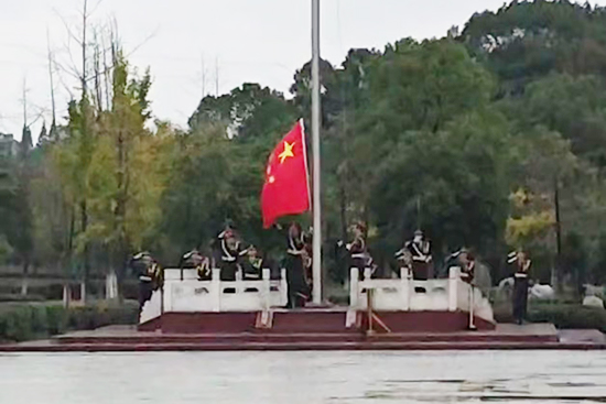 随着雄壮的国歌声响起,五星红旗在护旗手的护卫下缓缓升起。全体师生面向国旗行注目礼,表达对祖国的崇高敬意与无限热爱。尽管寒风凛冽,但师生们的爱国热情丝毫未减,新生们更是齐声高唱国歌,歌声响彻广场。