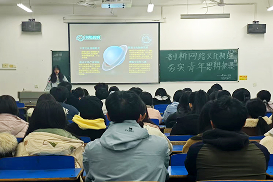 各班团支书通过案例剖析与数据阐释,系统阐释网络文化的多元形态与发展脉络,重点解析热门网络现象的传播机制,并就"流量至上"等网络异化现象展开多维研讨。同学们结合网络使用经验展开深度交流,深化了对信息筛选、价值判断等数字素养的认知。