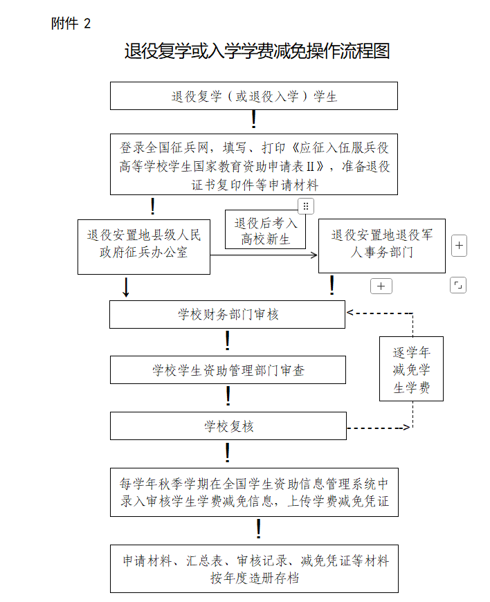 学校将学生《申请表Ⅱ》、退役证书复印件等相关申请材料及学费减免学生资助信息汇总表、高校审核记录、资金减免凭证等相关材料按年度造册存档。